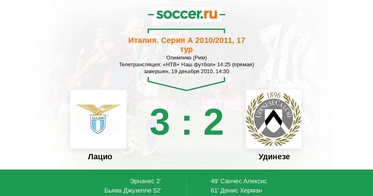 Лацио - Удинезе: обзор матча 19 декабря 2010