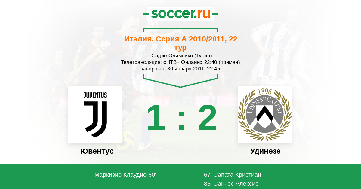 Ювентус - Удинезе: обзор матча 30 января 2011