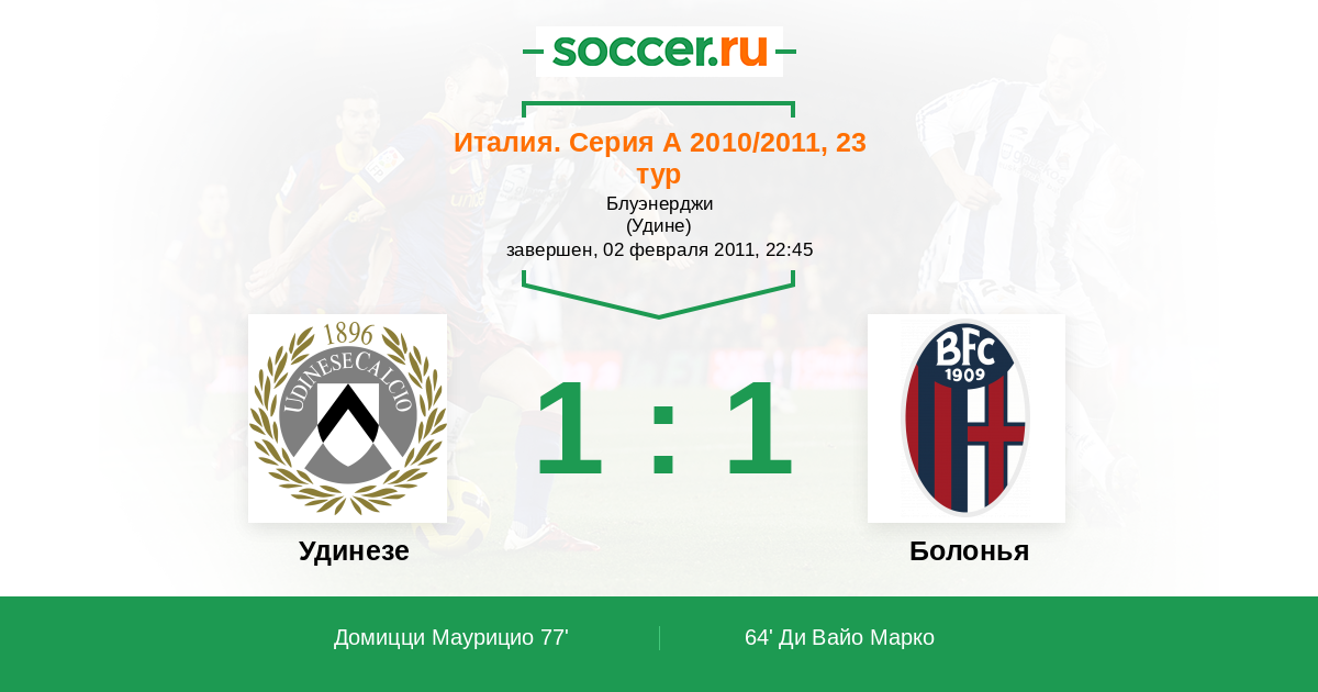 Удинезе - Болонья: обзор матча 2 февраля 2011