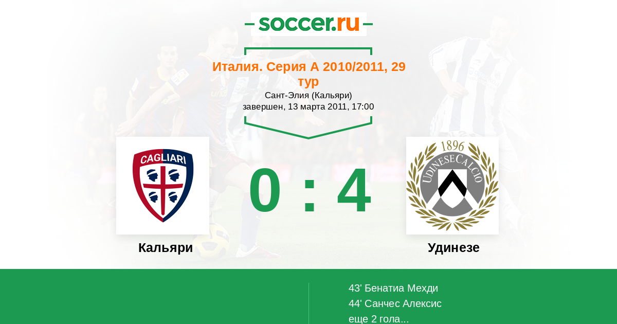 Кальяри - Удинезе: обзор матча 13 марта 2011