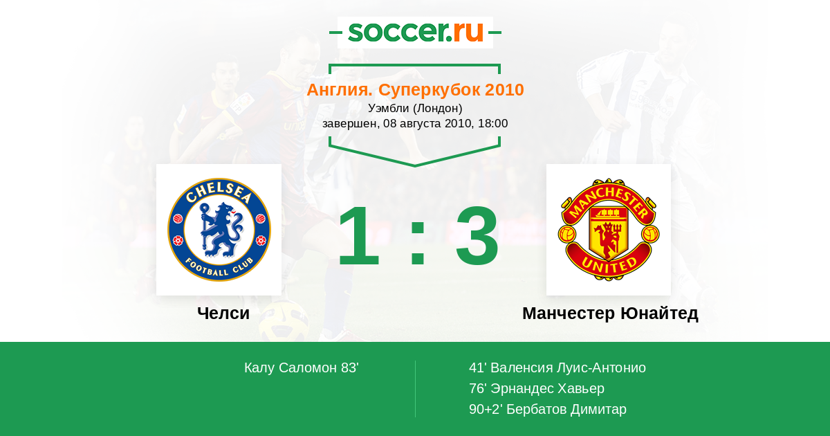 Челси - Манчестер Юнайтед: обзор матча 8 августа 2010