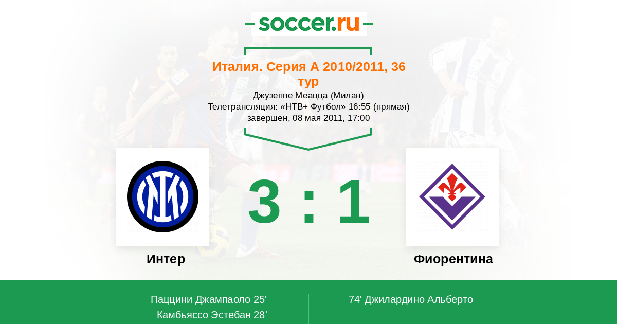 Интер - Фиорентина: обзор матча 8 мая 2011