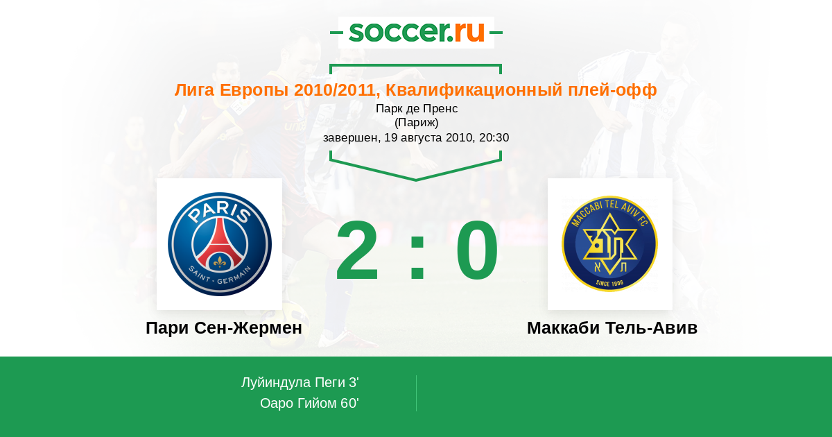 Пари Сен-Жермен - Маккаби Тель-Авив: обзор матча 19 августа 2010