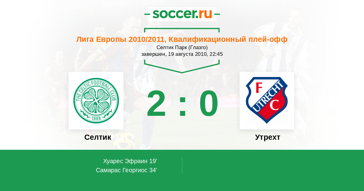 Селтик - Утрехт: обзор матча 19 августа 2010