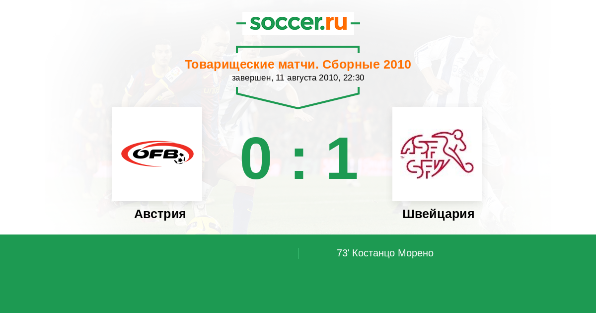 Австрия - Швейцария: обзор матча 11 августа 2010
