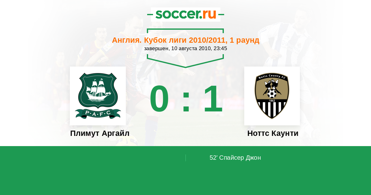 Плимут Аргайл - Ноттс Каунти: обзор матча 10 августа 2010