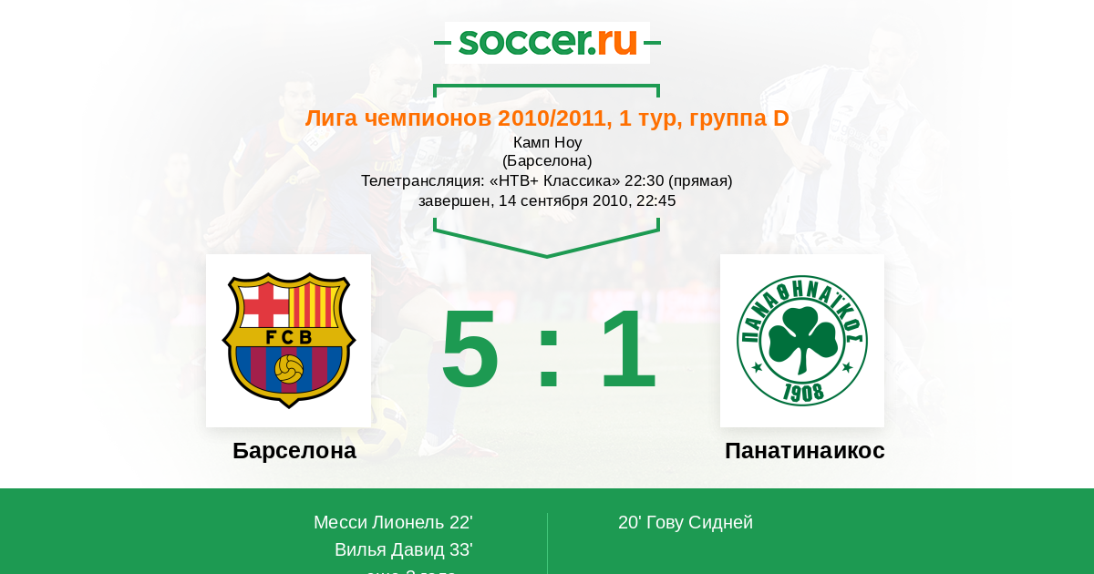 Барселона - Панатинаикос: обзор матча 14 сентября 2010