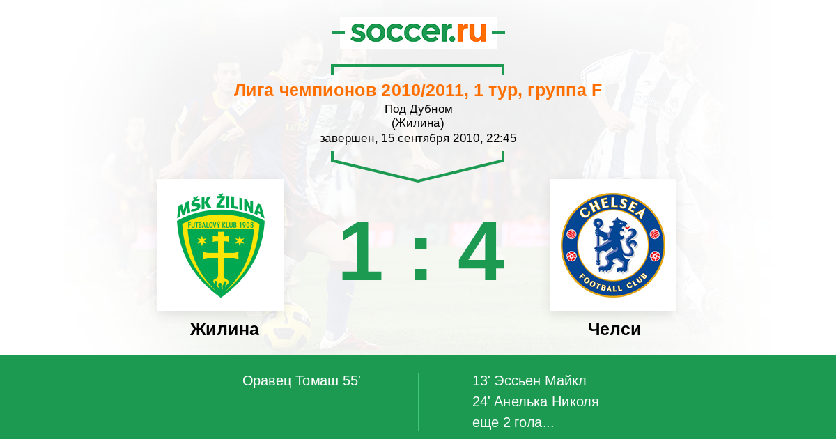 Жилина - Челси: обзор матча 15 сентября 2010