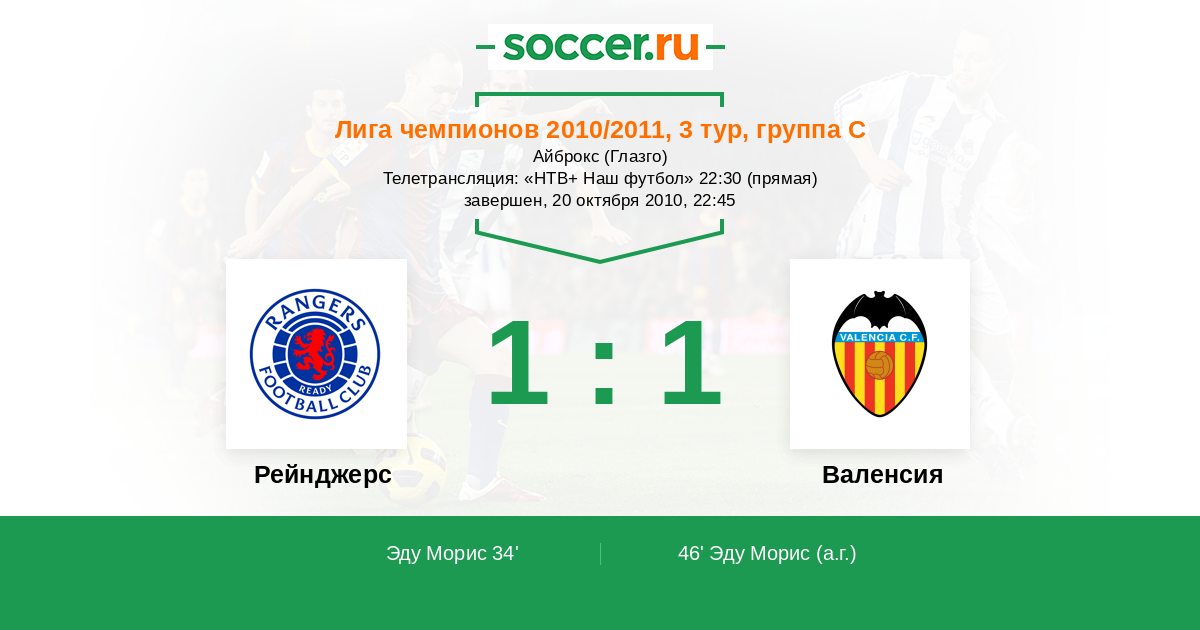 Рейнджерс - Валенсия: обзор матча 20 октября 2010