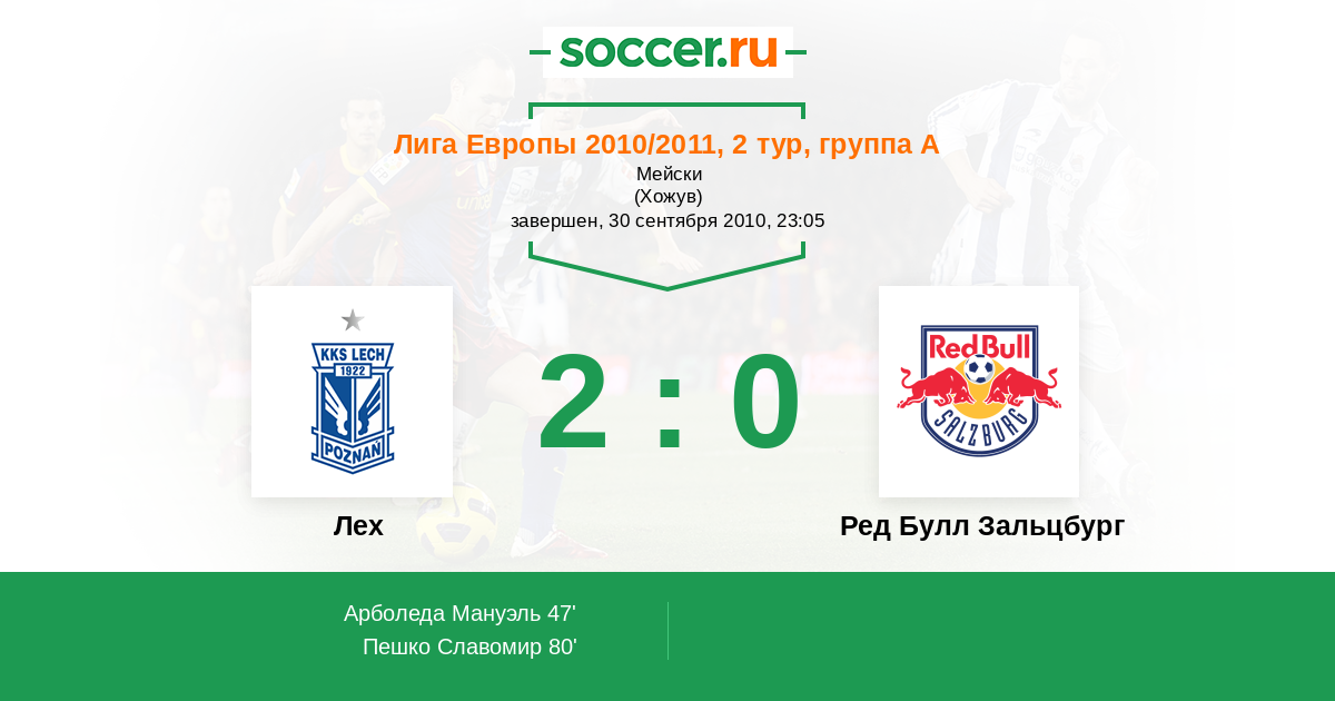 Лех - Ред Булл Зальцбург: обзор матча 30 сентября 2010