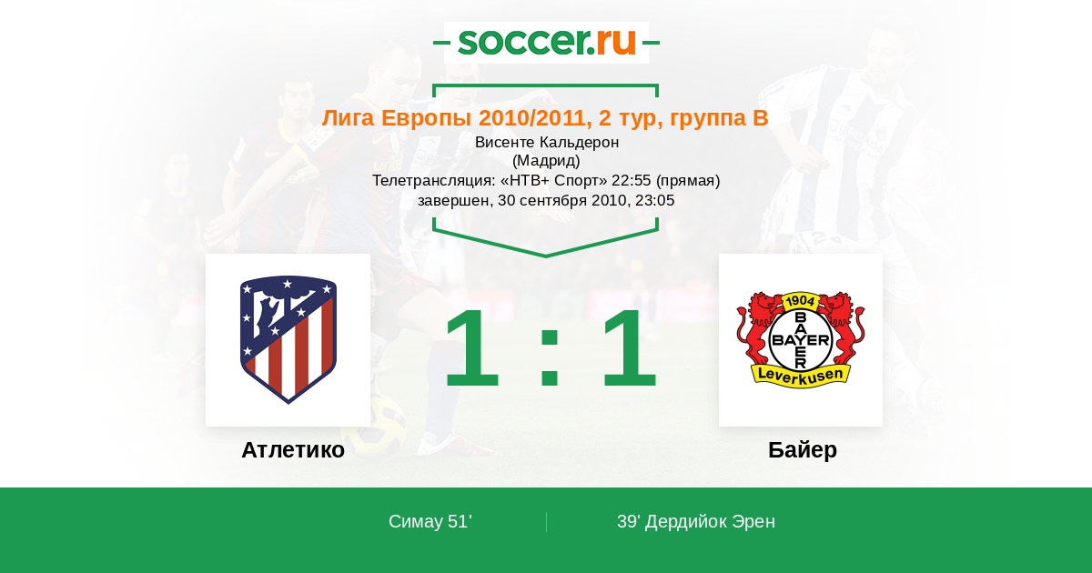 Атлетико - Байер: обзор матча 30 сентября 2010
