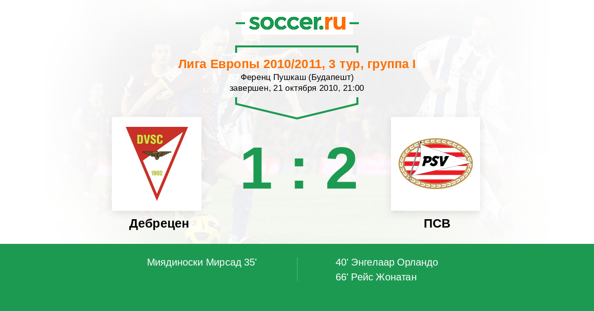 Дебрецен - ПСВ: обзор матча 21 октября 2010