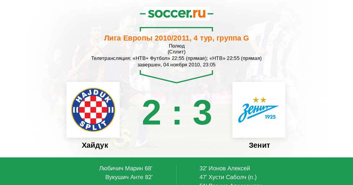 Хайдук - Зенит: обзор матча 4 ноября 2010