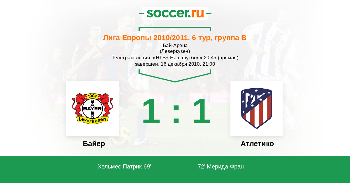 Байер - Атлетико: обзор матча 16 декабря 2010