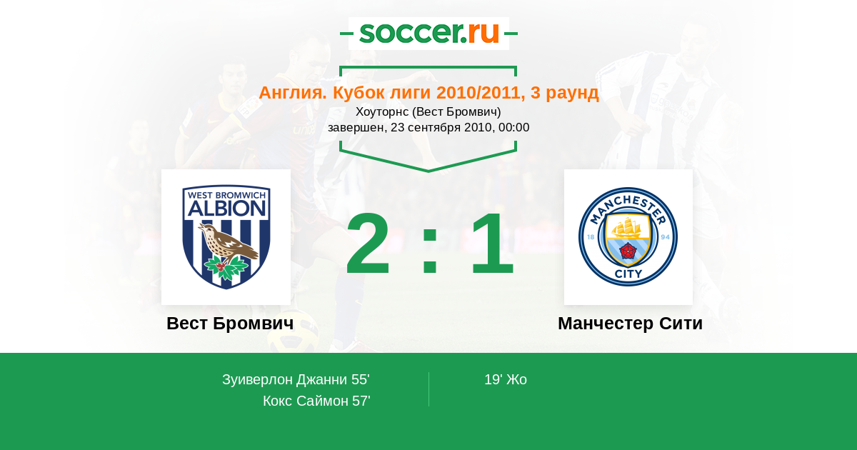 Вест Бромвич - Манчестер Сити: обзор матча 23 сентября 2010