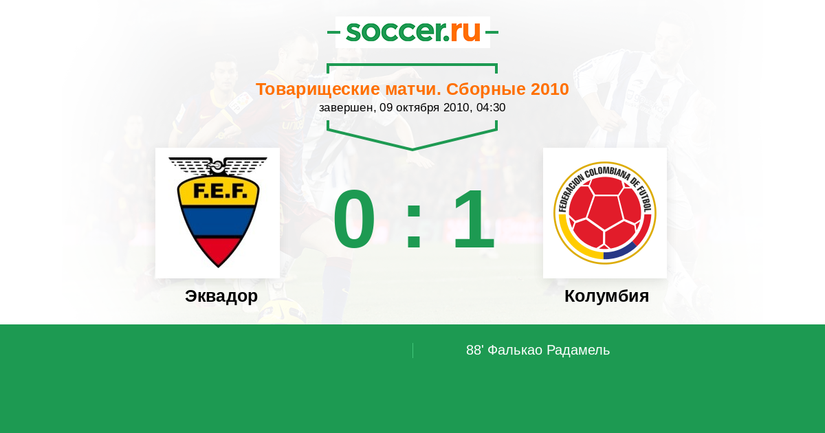 Эквадор - Колумбия: обзор матча 9 октября 2010