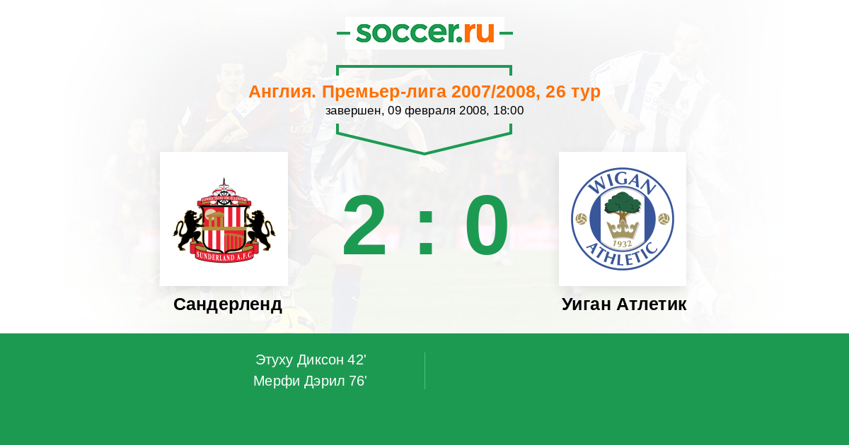 Сандерленд - Уиган Атлетик: обзор матча 9 февраля 2008