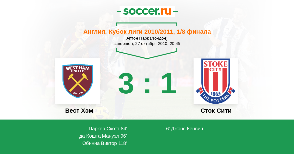 Вест Хэм - Сток Сити: обзор матча 27 октября 2010