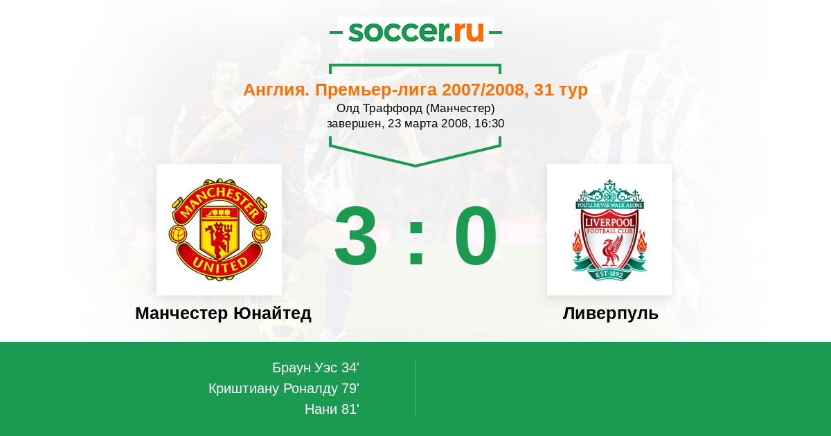 Манчестер Юнайтед - Ливерпуль: обзор матча 23 марта 2008