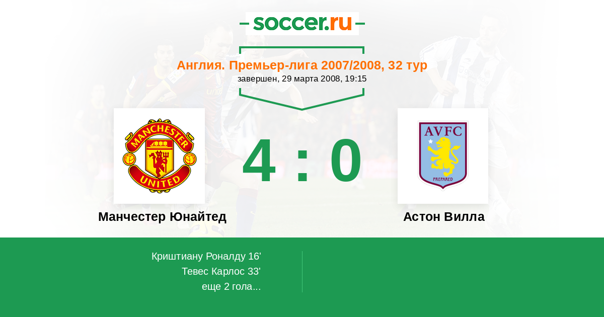 Манчестер Юнайтед - Астон Вилла: обзор матча 29 марта 2008