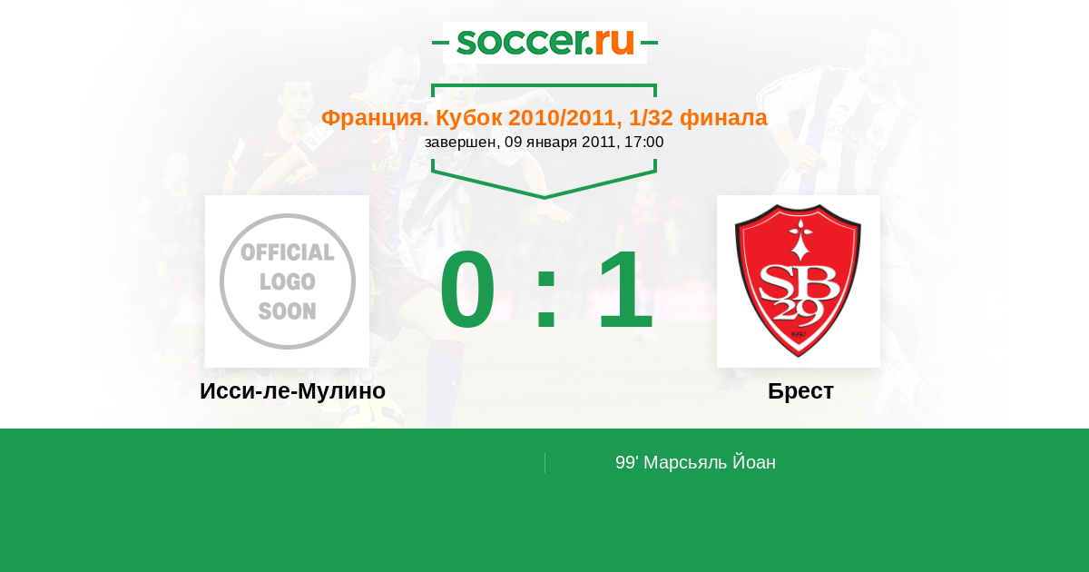Исси-ле-Мулино - Брест: обзор матча 9 января 2011