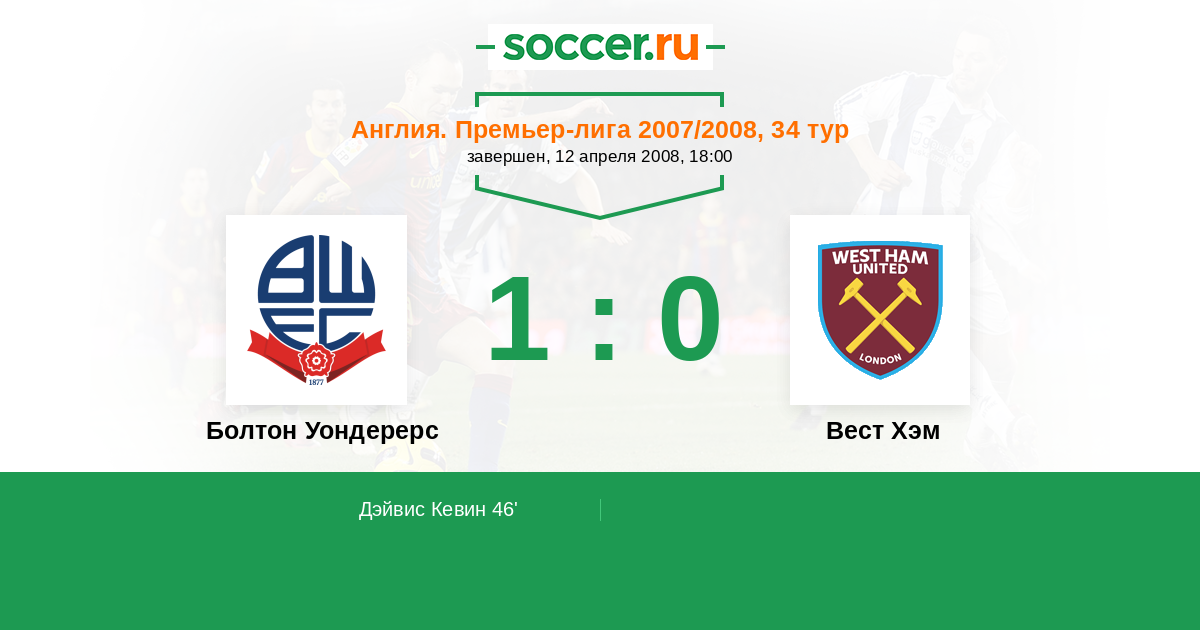 Болтон Уондерерс - Вест Хэм: обзор матча 12 апреля 2008