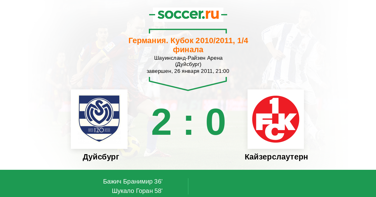 Дуйсбург - Кайзерслаутерн: обзор матча 26 января 2011
