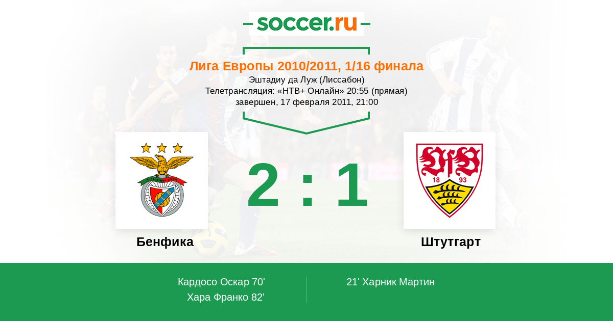 Бенфика - Штутгарт: обзор матча 17 февраля 2011