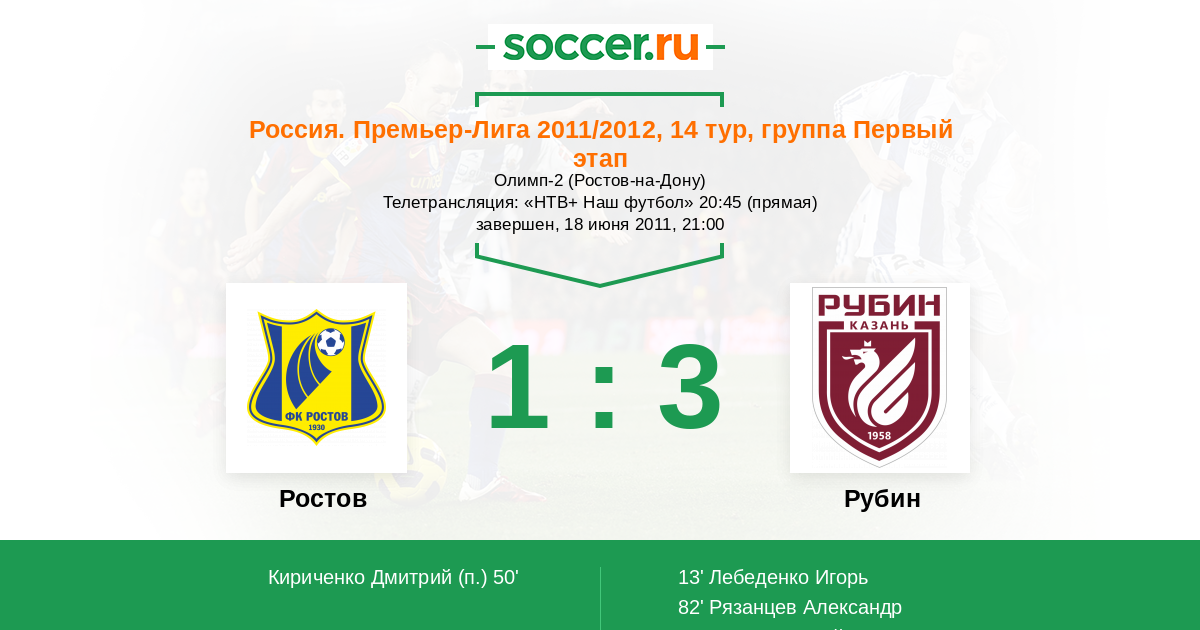 13' ГолЛоготип РубинЛебеденко Игорь (11, п) - 0:1