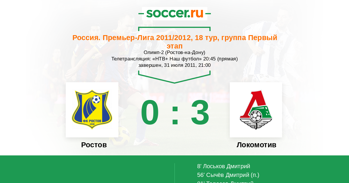 Ростов - Локомотив: обзор матча 31 июля 2011