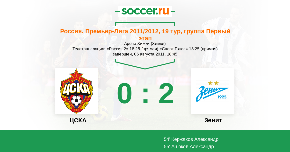 ЦСКА - Зенит: обзор матча 6 августа 2011