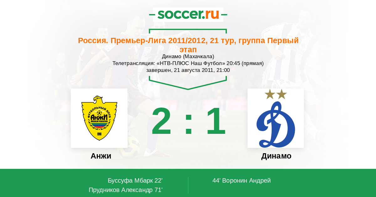 Анжи - Динамо: обзор матча 21 августа 2011