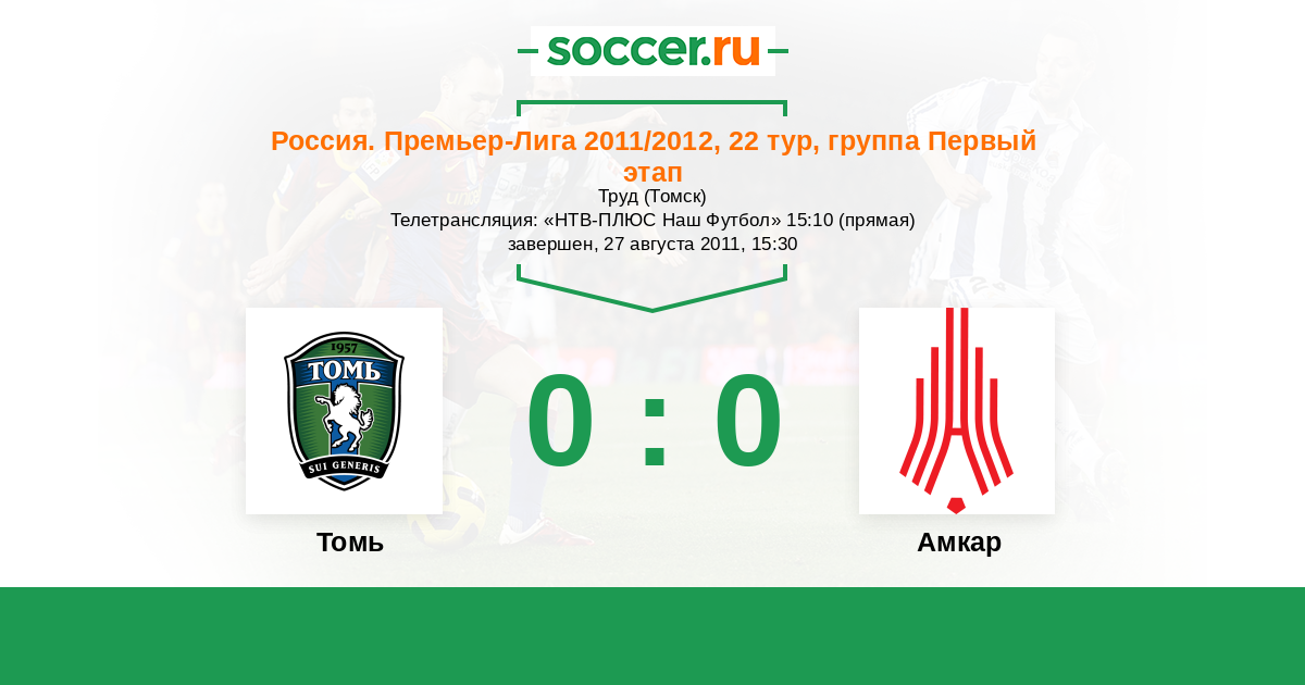 Томь - Амкар: обзор матча 27 августа 2011