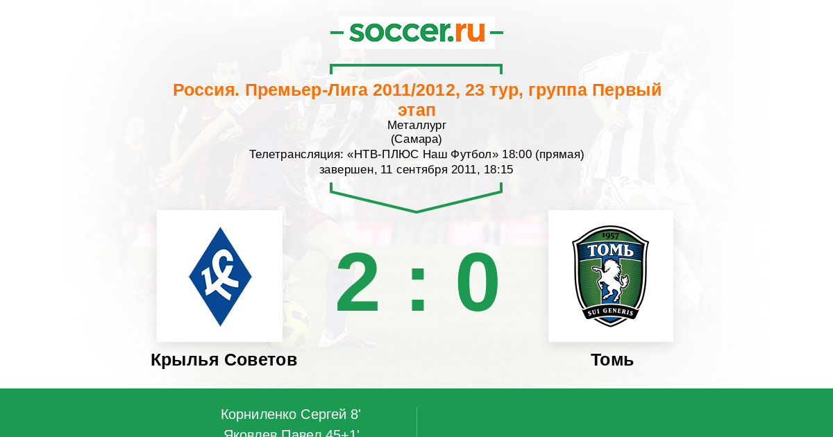 Крылья Советов - Томь: обзор матча 11 сентября 2011
