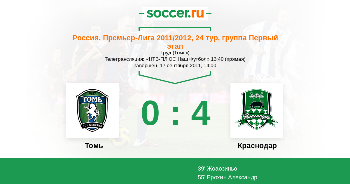 Томь - Краснодар: обзор матча 17 сентября 2011