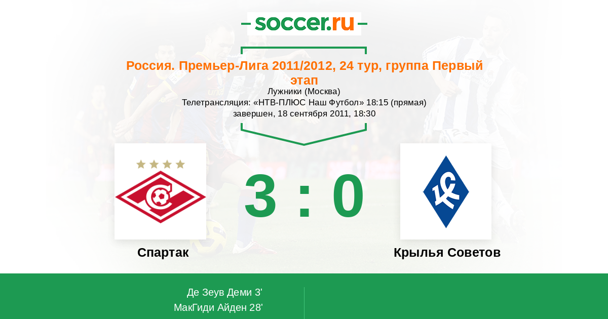 Спартак - Крылья Советов: обзор матча 18 сентября 2011