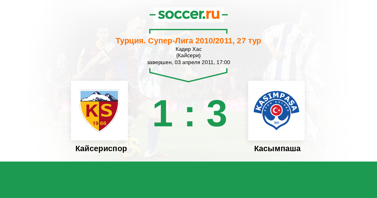 Кайсериспор - Касымпаша: обзор матча 3 апреля 2011
