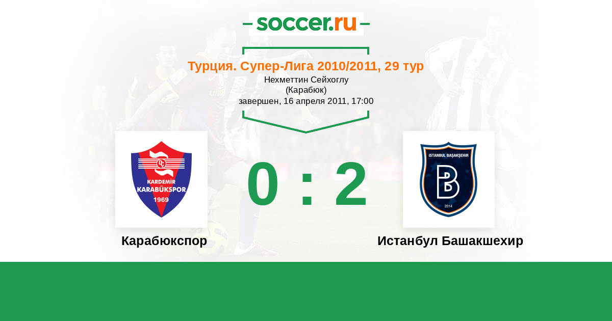 Карабюкспор - Истанбул Башакшехир: обзор матча 16 апреля 2011