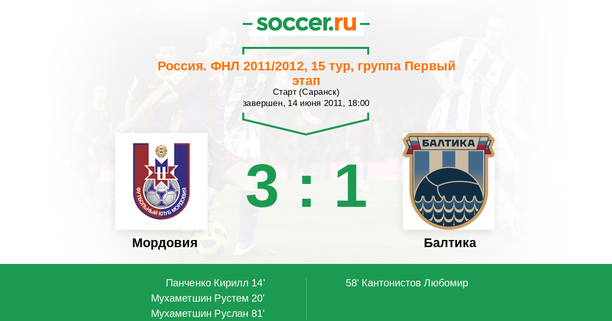 Мордовия - Балтика: обзор матча 14 июня 2011