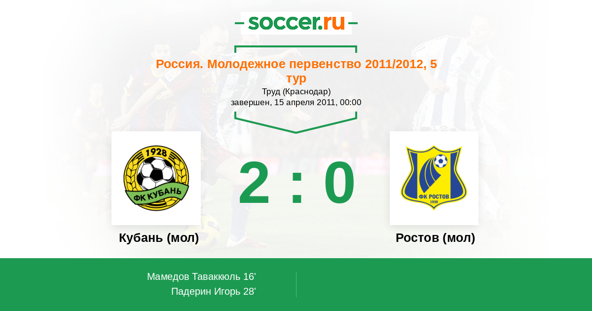Кубань (мол) - Ростов (мол): обзор матча 15 апреля 2011