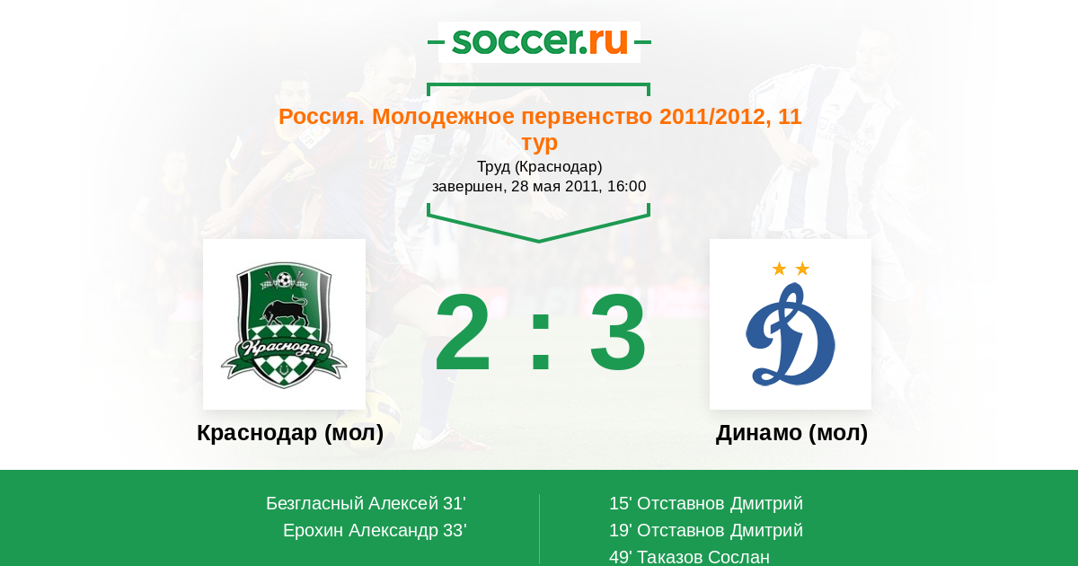 Краснодар (мол) - Динамо (мол): обзор матча 28 мая 2011