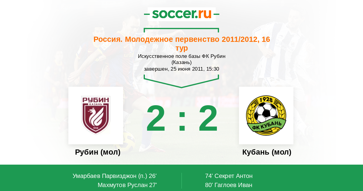 Рубин (мол) - Кубань (мол): обзор матча 25 июня 2011