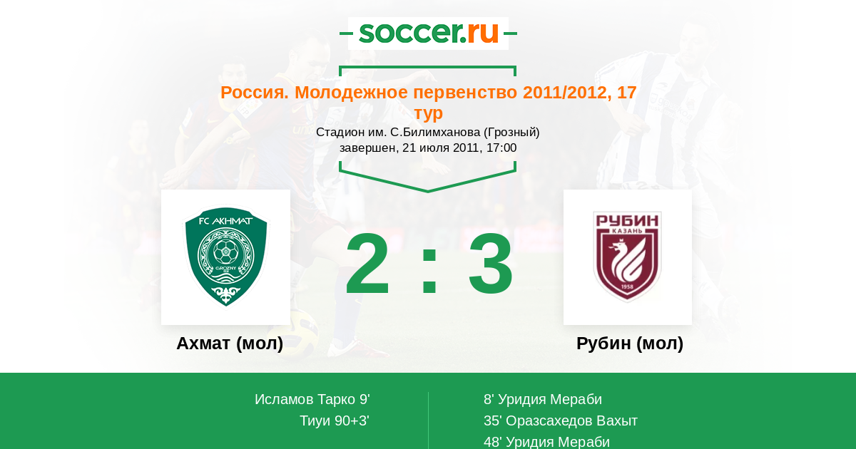 Терек (мол) - Рубин (мол): обзор матча 21 июля 2011