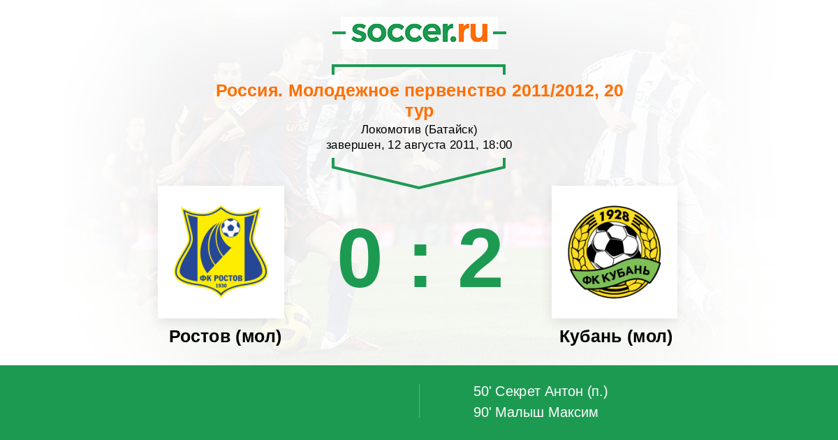Ростов (мол) - Кубань (мол): обзор матча 12 августа 2011