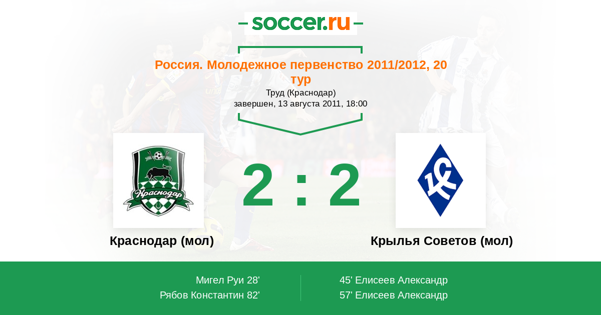 Краснодар (мол) - Крылья Советов (мол): обзор матча 13 августа 2011