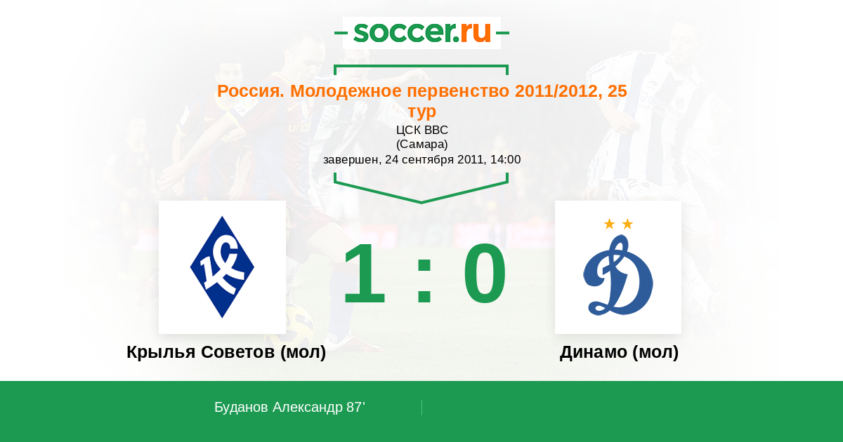 Крылья Советов (мол) - Динамо (мол): обзор матча 24 сентября 2011