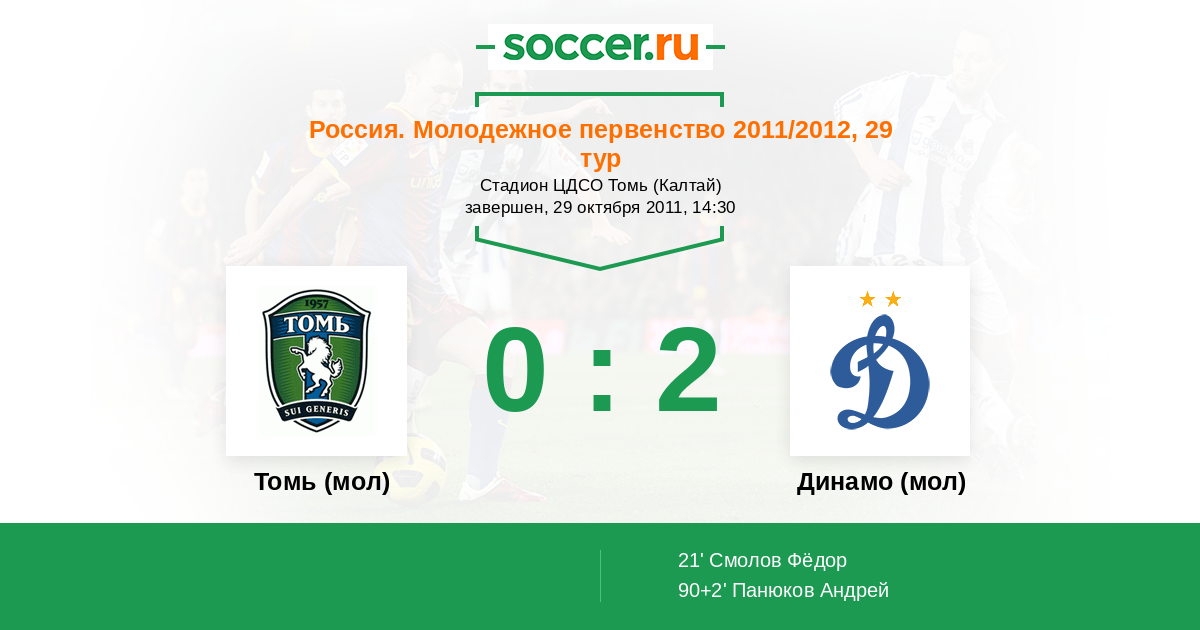 Томь (мол) - Динамо (мол): обзор матча 29 октября 2011