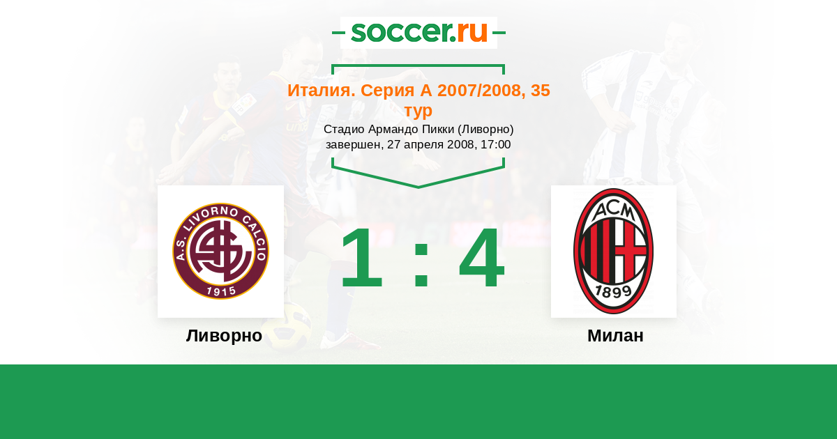 Ливорно - Милан: обзор матча 27 апреля 2008