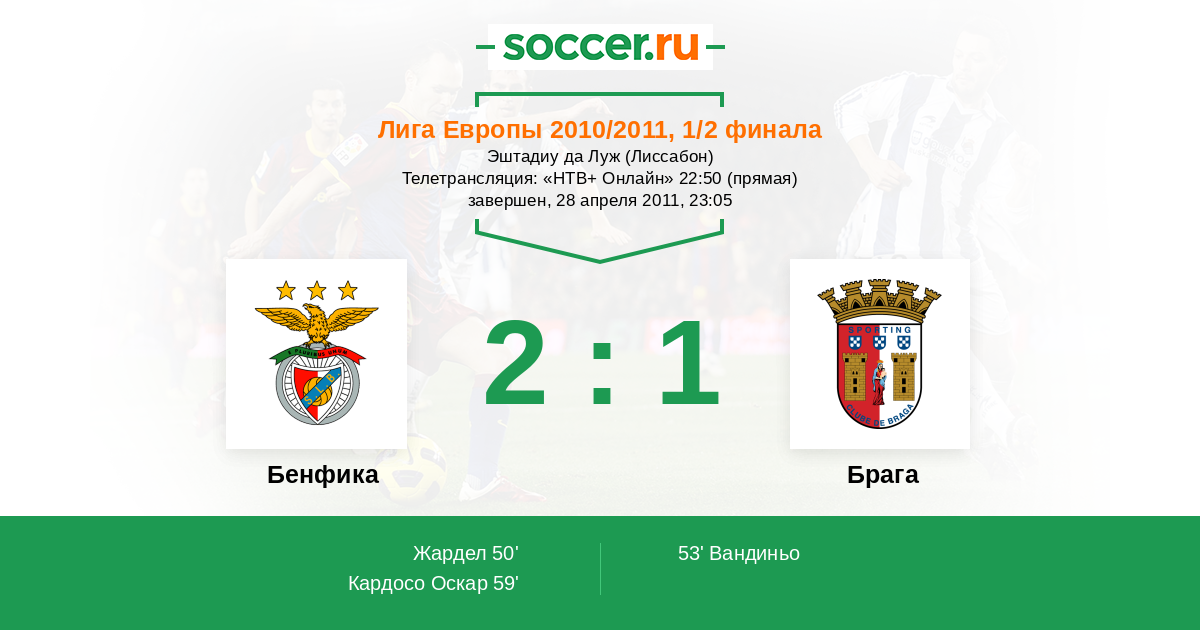 Бенфика - Брага: обзор матча 28 апреля 2011