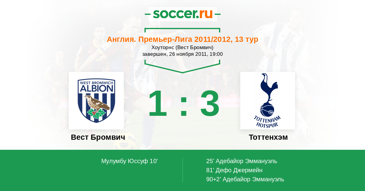 Вест Бромвич - Тоттенхэм: обзор матча 26 ноября 2011